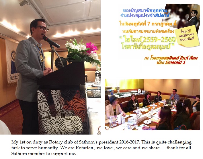 Rotary Club of Sathorn on the installation of 2016-2017 Club President & Administrative Board งานสถาปนาคณะกรรมการบริหาร สโมสรโรตารีสาทร ปี 2559-60 โดย คุณปิยบุตร ธรรมขันต์ เข้ารับตำแหน่ง นายกสโมสรโรตารีสาทร ปี 2559-60