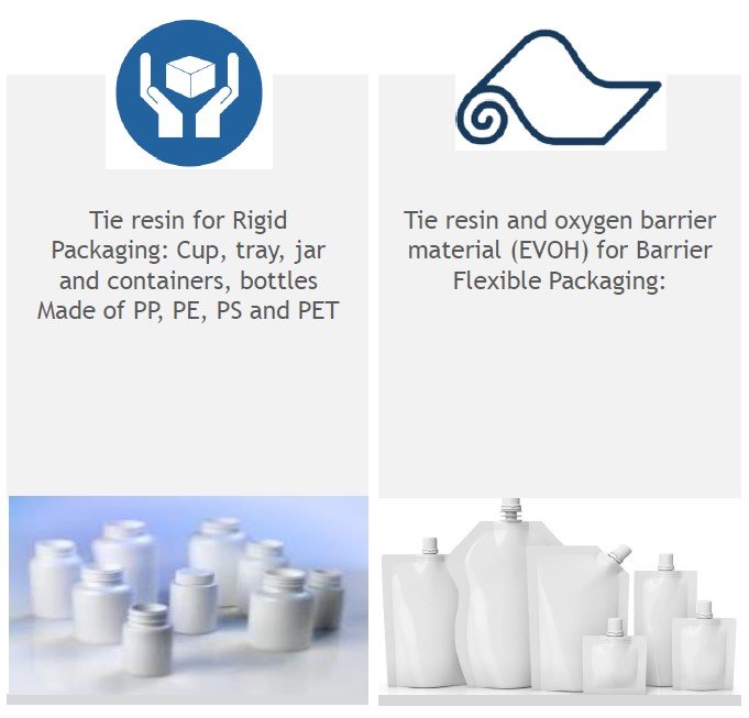 Orevac มีเกรดที่มี Base Resin เป็น Polyolefin ชนิดต่างๆ เช่น LLDPE, LDPE, PP, VLDPE, EVA etc.. ผ่านการโมดิฟาย โดย Graft กับ Maleic Anhydride มีคุณสมบัติช่วยให้ชั้นโพลีเมอร์ที่ต่างกัน และ ยึดติดกันไม่ได้หรือได้ไม่ดี ให้สามารถยึดติด (tie) เข้ากันได้ตามโครงสร้างหลากหลายชั้น ที่ออกแบบมาเพื่อตอบสนองเการป้องกันการซึมผ่านของก๊าซ ความชื้น ความแข็งแรง ความเหนียวทนทานของบรรจุภัณฑ์