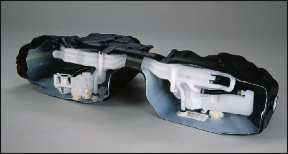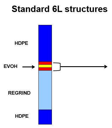 - ถังน้ำมันเชื้อเพลิงในรถยนต์ -> HEPE/regrind/tie/EVOH/tie/HDPE